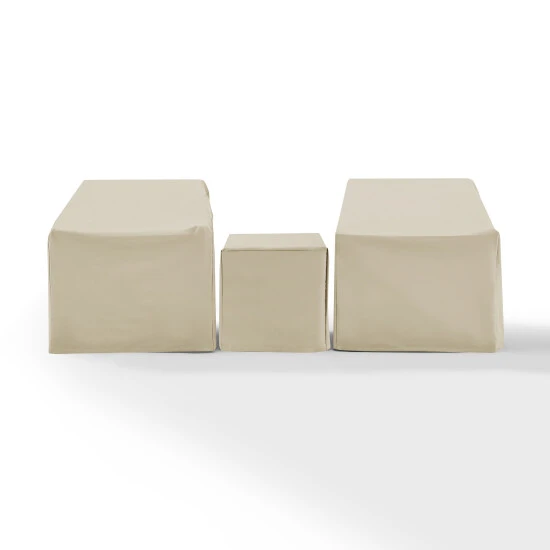 Give your outdoor chat set shelter with this 3pc custom-fitted protective outdoor cover set. Sewn from heavy gauge, reinforced vinyl, these covers are ready to face the elements, be they snow, dirt, sap, rain, and more. Tighten the sewn-in drawstrings and maintain your outdoor chat set’s beauty no matter the season. Designed to fit a variety outdoor wicker arm chairs and side tables.- Protects furniture from sun, rain, snow, dirt, sap and more – Made from heavy gauge, reinforced vinyl – Puncture resistant – Scratch resistant lining – Sewn-in drawstrings secure covers to furniture – Cover is waterproof – Fully assembled – Compatible with the following collections: Palm Harbor, Bradenton, Kiawah, Tribeca, St. Augustine, Kaplan, Eastport, Capella, Biscayne, Hamilton, Landon, and Richland