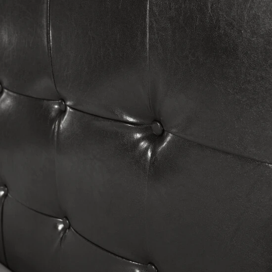 Support your back and head comfortably on this faux-leather queen-size headboard while you lie in bed to read or watch television. This black, button-tufted headboard easily blends with modern or traditional furnishings.