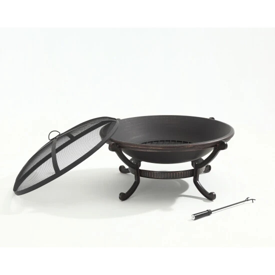 Relax on an outdoor evening around this wood-burning firepit. Made from sturdy stainless steel, this firepit features a roomy, elevated basin that keeps wood safely inside and protects your deck or patio floor from heat, while its included spark guard screen keeps the fire confined for secure enjoyment.