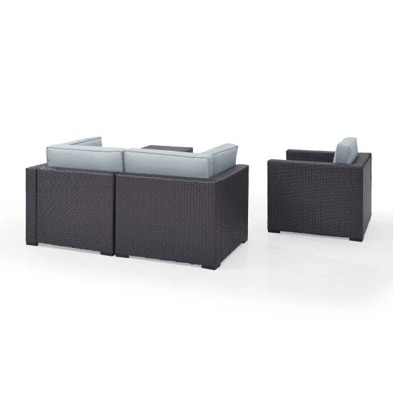 Enjoy some fresh air in your backyard comfortably with this Biscayne seating set. The wicker material is UV-resistant to avoid fading and sun damage, and the cushion covers are moisture-resistant to withstand rain and dew.
