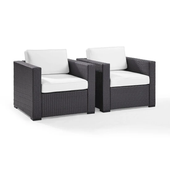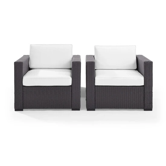 Treat your guests to exquisite patio seating with these Biscayne outdoor chairs by Crosley Furniture. These easy-to-assemble chairs with sturdy steel frames have moisture-resistant covers and UV-resistant resin wicker to withstand the elements year-round.