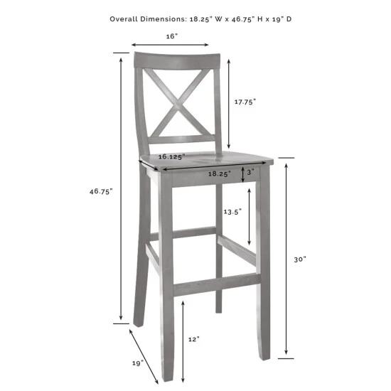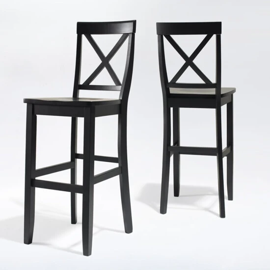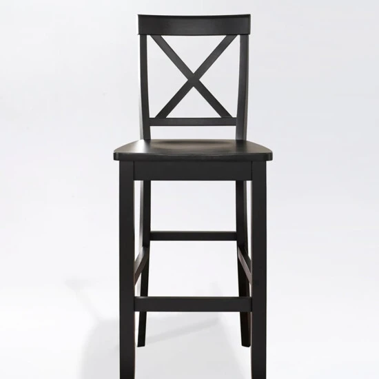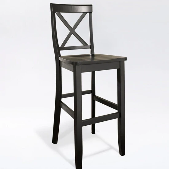 Designed for longevity, this handsome X-back style bar stool is constructed of solid hardwood. Lovely contoured seats and a shaped back provide the ultimate in comfort. The skilled craftsmanship is highlighted with a black finish for blending in with any decor.