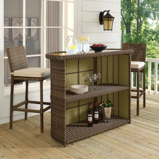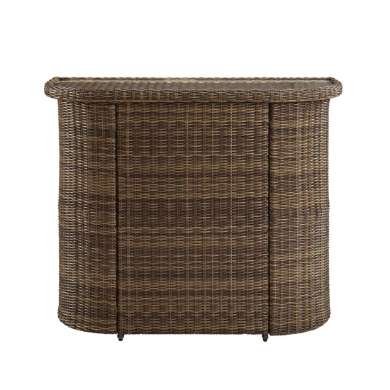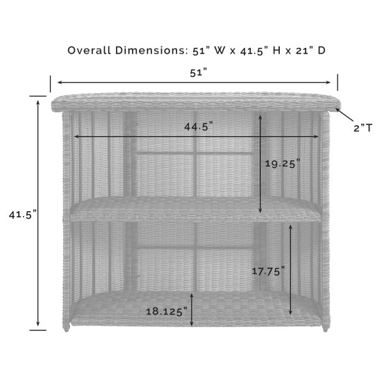 Spend warm summer days and balmy summer nights in luxury with the Bradenton Wicker Bar from Crosley. All-weather wicker combine elegant lines with casual comfort in one versatile design with dozens of possibilities. This full size bar is ideal for designing a cozy entertaining nook in any outdoor environment.