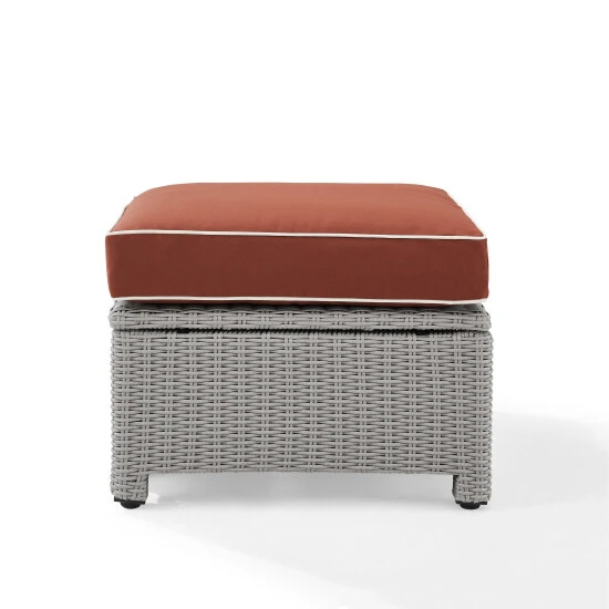 The Bradenton Ottoman adds versatility to entertaining outside. Ideal for propping up your feet or as extra seating, this ottoman has all-weather resin wicker woven over a durable steel frame. Incorporated with the rest of the Bradenton collection or paired with an eclectic mix of patio furniture, the Bradenton Ottoman offers endless options for your outdoor space.
