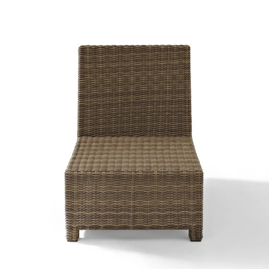 The center chair from the Bradenton Outdoor Sectional Sofa collection is constructed from durable steel with all-weather wicker. The seat is complete with UV-resistant polyester fabric in a navy color with sand piping.
