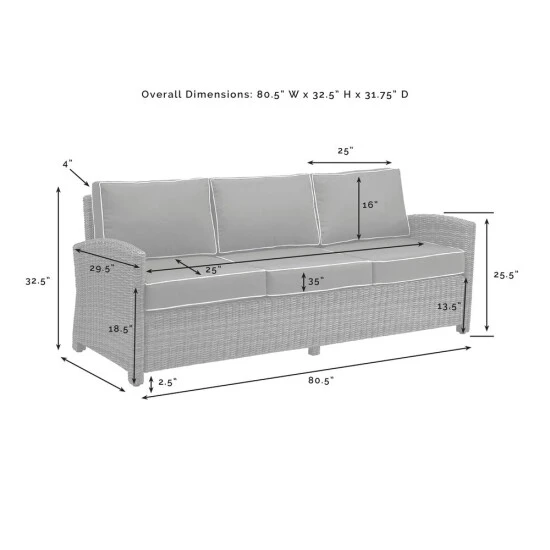 - 32.5 inches deep x 81 inches wide x 33 inches high