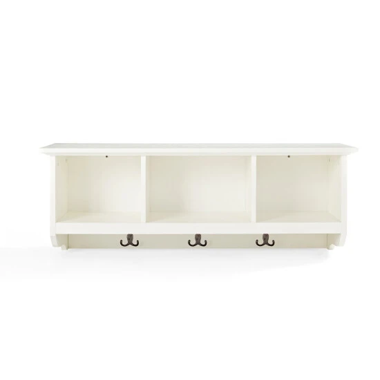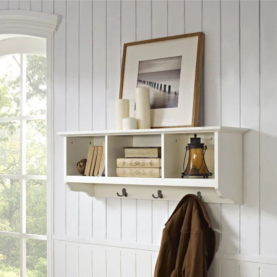 Hang coats and jackets, store hats, and display photos using this entryway storage shelf. Made of wood for durability, this storage shelf is also a charming way to show off pillar candles and decorative items.
