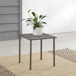 Add tablespace to your outdoor retreat with the Cali Bay Side Table. Featuring a sleek silhouette, this low-profile side table will complement a variety of outdoor seating. Constructed of sturdy powder-coated steel, the slatted top Cali Bay Side Table is an ideal spot to set a cool drink while you relax on a warm summer day.Features:Modern coastal designConstructed of sturdy weather-resistant steelLight brown powder-coated finishUV and rust resistantSlatted tabletopTable weight limit is 100lb