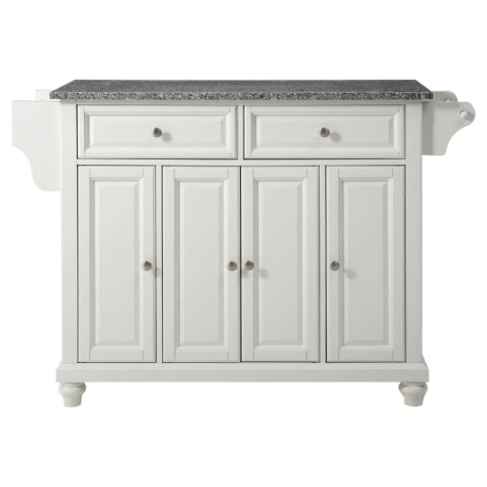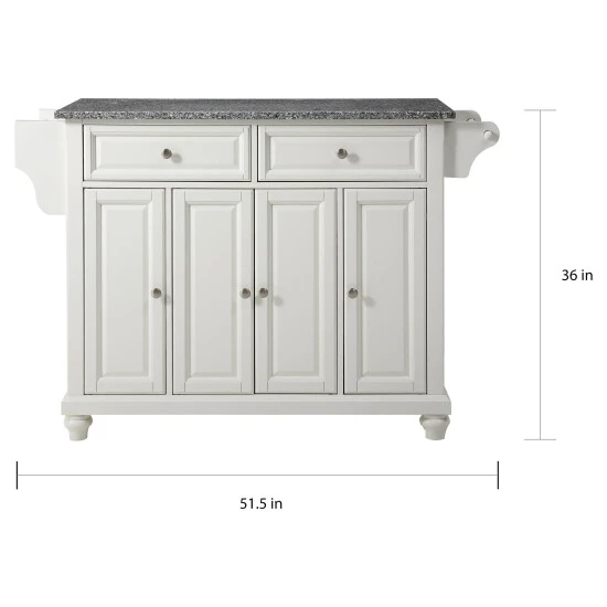 Constructed of solid hardwood and wood veneers, this kitchen island is designed for longevity. The beautiful raised panel doors and drawer fronts provide the ultimate in style to dress up your kitchen. Two deep drawers are great for anything from utensils to storage containers. Behind the four doors, you will find adjustable shelves and an abundance of storage space for things that you prefer to be out of sight. Style, function, and quality make this kitchen island a wise addition to your home.
