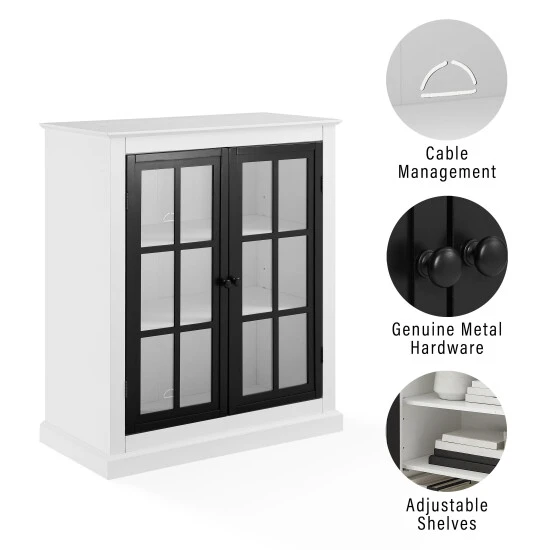 Make a statement with the Cecily Stackable Storage Pantry. With a striking two-tone color palette, the cabinet’s classic windowpane doors offer a modern take on French country style. On its own this accent cabinet features two adjustable shelves that can store everything from dishes to bath towels. Stack two pantries together and you double your storage without sacrificing floor space.Features:French country designWhite finishFrench casement cabinet doors with a matte black finishGenuine metal hardware in a matte black finishCabinet doors have magnetic closuresTwo adjustable and removable shelves, each with a 15lb weight limitIncludes metal plate for stacking two units togetherSecond unit for stacking is sold separatelyCan be used as a bookcase, display space, or home organization toolPairs well with modern farmhouse and traditional décor
