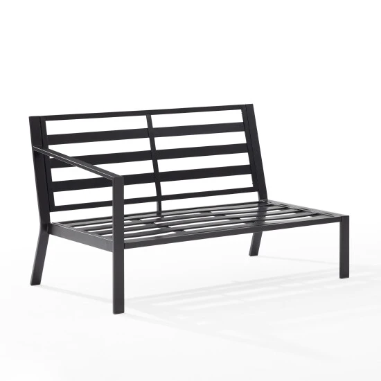 Sleek and modern, the Clark Sectional Loveseat is an ideal spot to enjoy a cup of coffee in the morning sun. Made from powder-coated steel, this loveseat is oriented to the left leaving the right side open for lounging. Topped with thick cushions covered in weather-resistant fabric, the Clark Sectional Loveseat works perfectly as standalone seating or can be combined with other sectional pieces in the collection.Features:Modern designWeather-resistant powder-coated steel frameMatte black finishTaupe cushion coversCharcoal cushion coversHigh-performance solution-dyed polyester cushion covers resist mildew, sun fade, and abrasionQuick-drying olefin fabric cushion covers resist mildew and sun fadeMoisture-resistant high grade cushion cores4″ thick seat and back cushionsRemovable cushion covers are machine washableThe cushions are secured with sturdy Velcro tabs for easy removalSlatted back designThe modular design and easy to adjust Velcro connectors allow the seating to quickly adapt to your needs, offering limitless configurations.