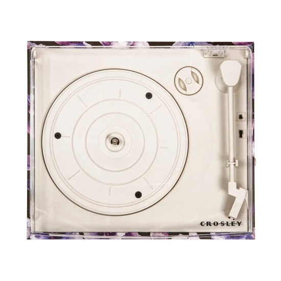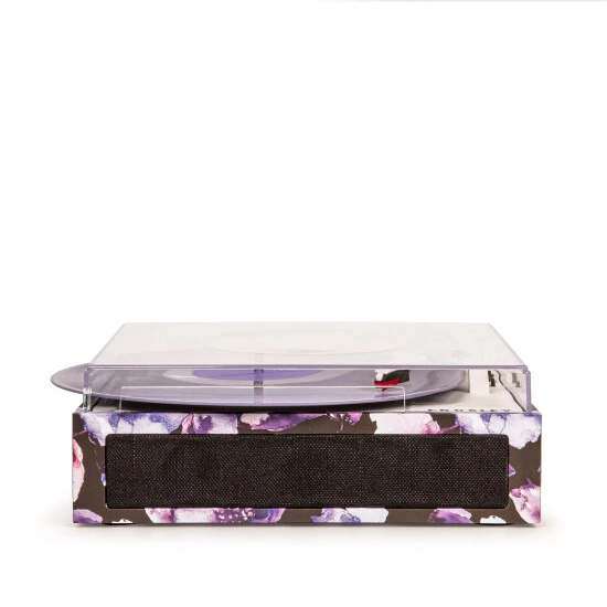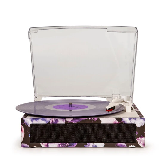 Features: 3-Speed Turntable (33 1/3, 45 and 78 RPM), Built-in Bluetooth Receiver, Aux Input, Output, Stereo Speakers, Headphone Jack, Clear Dust Cover, Holds 25+ Albums