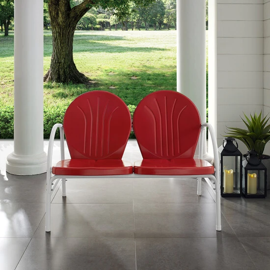 Get ample seating for your garden or patio with this metal loveseat for two crafted from durable steel. The powder-coated red finish captures attention, while the water-resistant design easily withstands the elements.