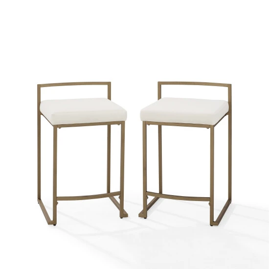 Great for extra seating or to add a dash of elegance to your kitchen island, the Harlowe 2pc Counter Stool Set offers contemporary flair without sacrificing comfort. Featuring a sleek modern base and footrest with a plush velvet seat, this pair of stools adds instant glam to your kitchen or dining area. Slide the Harlowe Counter Stools up to any counter height table or breakfast bar for a stylish dining experience.Features: -Modern design -Steel frame has a soft gold finish -Seat upholstered in velvet -Stool base has a geometric sled design -Curved footrest on base -Curved low back -Pairs well with glam, Art Deco, modern farmhouse and traditional decor