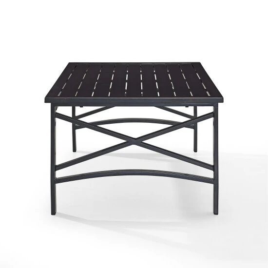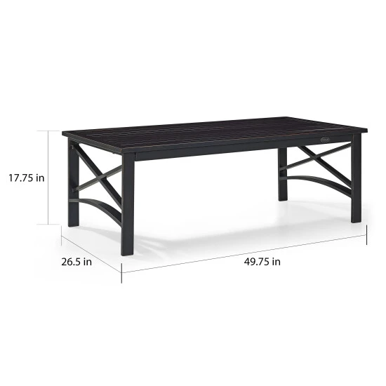 Add simple elegance to your outdoor area with the Kaplan Coffee Table. This slated coffee table is made with rust protected premium steel with an oil bronze finish. It can be paired with any of the pieces in the Kaplan Collection. It is easy to assemble and even easier to enjoy.