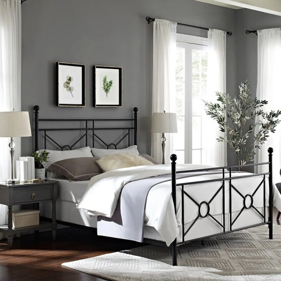 Expect sweet dreams in the Montgomery bed. Forged from thick steel bars in the traditional “captured circle” design, this bed exudes an easy elegance. With clean lines and an adaptable appearance, the Montgomery, suits many aesthetics. If you want a modern vibe, we recommend using earth tone colored bedding. For a beachy feel, use sea-glass, or turquoise bedding. The options are endless.