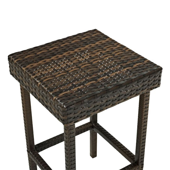 Secure your patio’s tropical vibe with this set of two Palm Harbor outdoor bar-height stools. Featuring steel frames for sturdy support, these stools have woven wicker seats for casual charm and are weather-resistant for durable functionality. These stools are brown in color for versatile style and neutral charm.