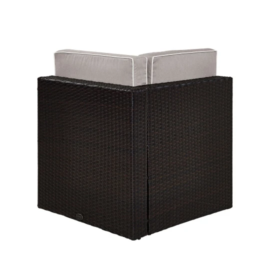 Enjoy entertaining outside with our elegantly designed all-weather resin wicker corner chair. This finely crafted collection features intricately woven wicker over durable steel frames and UV/Fade resistant cushions providing both comfort and style. Clean lines marry with sophisticated design offering endless seating configurations. Pair with any number of our wicker sectional options for a customized layout perfect for any outdoor space.