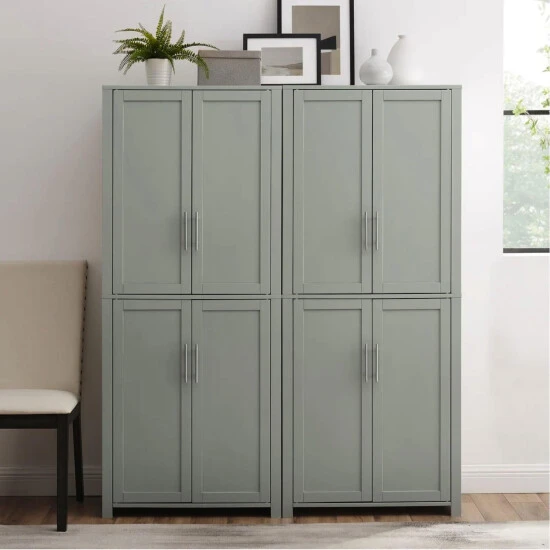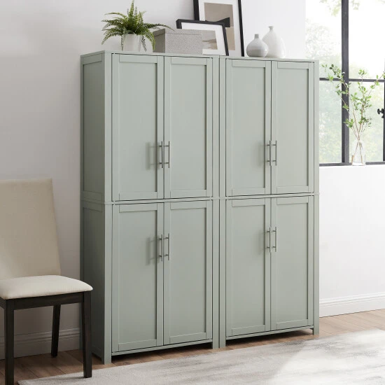 Revolutionize storage in your kitchen, laundry room, or anywhere else with this set of two pantry units. These tall pantries each include four adjustable shelves and two fixed shelves, providing plenty of space. They can be placed side by side or used separately.