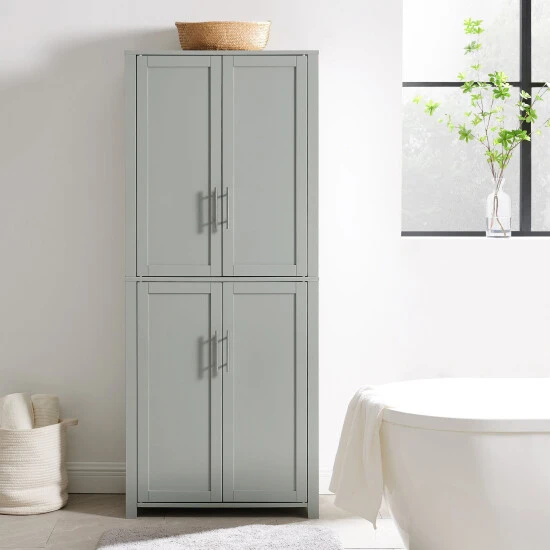 A simple design with generous storage makes the Savannah Tall Pantry ideal for organizing your home. Large upper and lower cabinets with adjustable shelving allow you to tuck away everything from dishes to bath towels. Stay stylish and clutter-free with the Savannah Tall Pantry’s beautiful Shaker-style cabinet doors.Features: -Transitional design -Genuine metal hardware in a brushed nickel finish -Two cabinets, each with two adjustable shelves -Cabinet doors have magnetic closures -Shaker-style recessed paneling on cabinet doors -Can be used as a linen cabinet, food pantry, or home organizer -Modular design allows multiple units to be paired together -Pairs well with modern, minimalist, traditional, and farmhouse decor