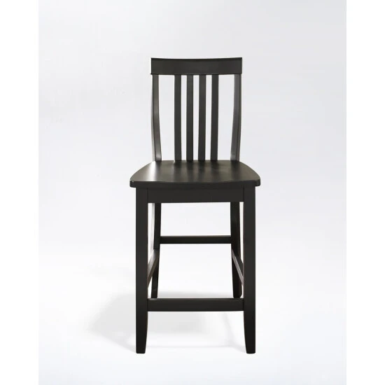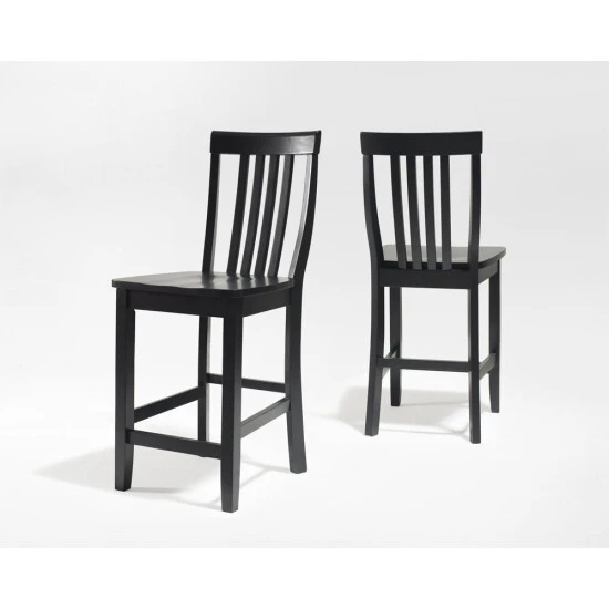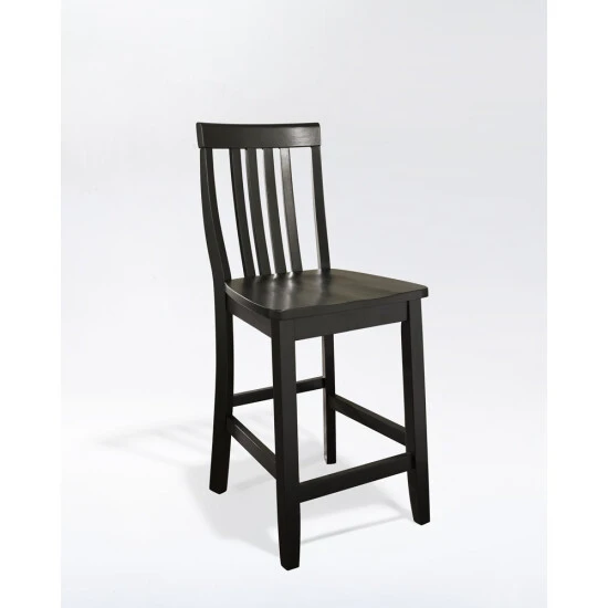 Constructed of solid hardwood, this School House style bar stool is designed for longevity. Contoured seats and shaped back provide the ultimate in comfort. The 24 inch seat height makes this stool perfect for 36 inch height dining tables or counter seating. Skilled craftsmanship and attention to detail is sure to put the finishing touch on your home.