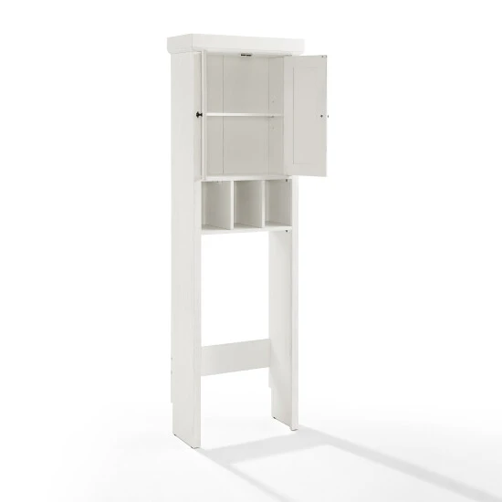 The Seaside Space Saver provides over-the-toilet storage with coastal cottage style. Designed to fit over most standard sized toilets, this space saver features a large storage cabinet with classic beadboard paneling and genuine metal hardware. The shelf in the cabinet can be adjusted to accommodate a variety of toiletries and bath items, making the Seaside Space Saver is a must have for any bathroom. – Coastal cottage design – Distressed white finish – Adjustable and removable shelf – Beadboard paneling – Genuine metal hardware in a gunmetal finish – Fits over most standard sized toilets – Notched back accommodates most baseboards allowing unit to fit flush against the wall. – Pairs well with traditional, farmhouse, and coastal cottage decor