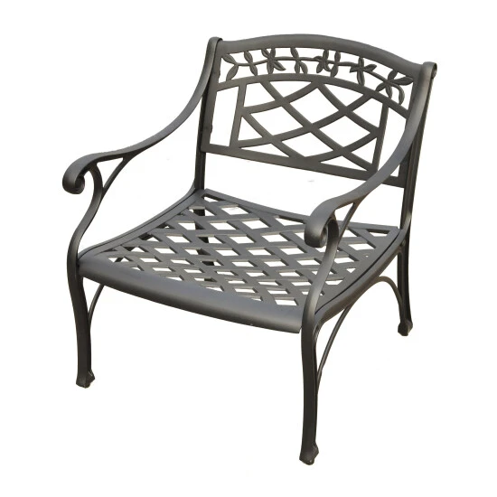 It may be hot outside, but you’ll feel cool kicking back in our heavy duty, solid-cast aluminum furniture. Designed for style and built to last, this outdoor conversation seating set features a durable charcoal black powder coated finish that will weather the harshest of outdoor conditions. Experience pure nirvana while unwinding in the chair’s comfortable contoured seats. Your very own outdoor oasis awaits you.