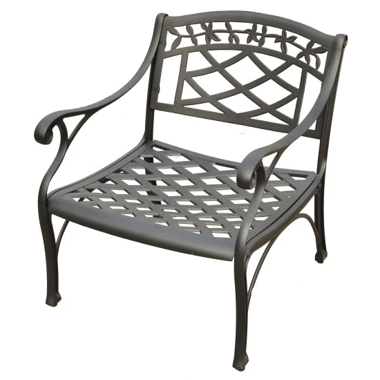 It may be hot outside, but you’ll feel cool kicking back in our heavy duty, solid-cast aluminum furniture. Designed for style and built to last, this club chair features a durable charcoal black powder coated finish that will weather the harshest of outdoor conditions. Experience pure nirvana while unwinding in the chair’s comfortable contoured seats. Your very own outdoor oasis awaits you.