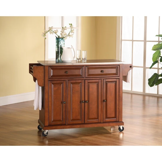 Bring robust style to your kitchen with this kitchen island cart from Crosley Furniture. A large top provides an additional work surface for chopping food or prepping meals, and the top’s stainless steel construction makes it easy to clean and disinfect. Count on the storage below to keep your kitchen organized, neat, and tidy.