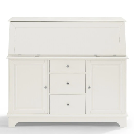 Convert any space in your home to an organized office with this Sullivan secretary desk from Crosley Furniture. Constructed of wood for durability, this modern desk features a chic white finish. With 10 drawers, the desk contains plenty of space to stow your essentials. The fold-down desktop lets you write or work on a laptop before closing it up to maximize space.