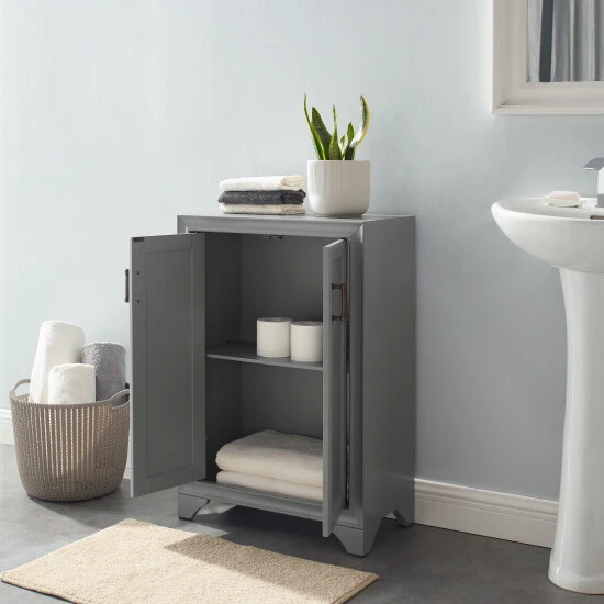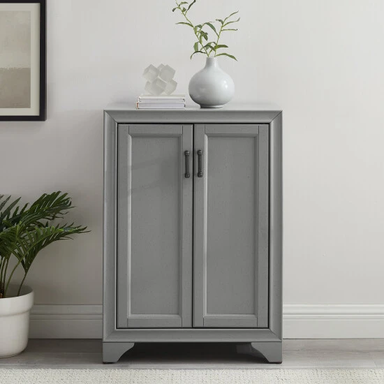 Bring classic charm to any room of the home with the Tara Accent Cabinet. Featuring a beautifully distressed finish and traditional design elements, this cabinet will blend with a variety of home decor. Featuring an adjustable shelf that adapts to your needs, you can use this item as a small pantry, entryway storage, or bathroom cabinet. Great for smaller spaces, the Tara Accent Cabinet is the home organization tool you’ve been looking for.Features:Modern farmhouse designDistressed white finishGenuine metal hardware in a black finishCabinet doors have magnetic closuresAdjustable and removable shelf inside cabinet with a 15lb weight limitModular design allows multiple units to be paired together or with other items in the collectionPairs well with traditional decor