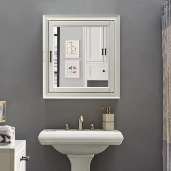 With a large mirror front and hidden, spacious storage this cottage-styled cabinet will help you get organized. The white finish and bronze hardware are slightly antiqued to bring character to the cabinet without ageing it. The Tara bath cabinet is easily paired with the rest of the Tara Collection, but it also suitable for many decors.
