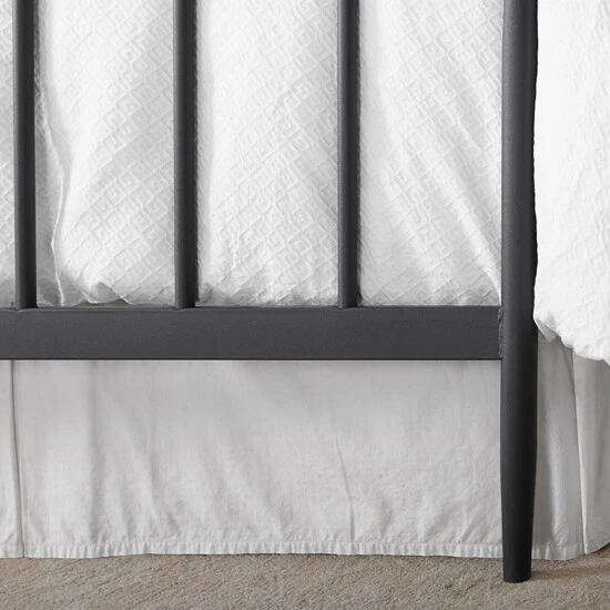 Give your bedroom a classic look and feel with our Whitney headboard and footboard. Featuring a slight arch on the headboard and footboard along with tapered legs, the Whitney puts a new spin on the classic metal bed by creating clean, modern lines on an otherwise traditional silhouette. The textured charcoal powder coating on the steel frame and oval finials help to complete the look, making it a stylish addition to any bedroom. Rails, mattress and box spring not included.