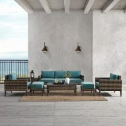 Flash Sale ???? Crosley Furniture Prescott 7Pc Outdoor Wicker Sofa Set Mineral Blue ????