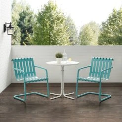 Budget ???? Crosley Furniture Gracie 3Pc Outdoor Metal Bistro Set Pastel Green Satin ????