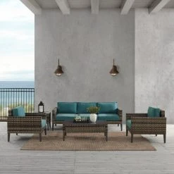 Flash Sale ???? Crosley Furniture Prescott 7Pc Outdoor Wicker Sofa Set Mineral Blue ????